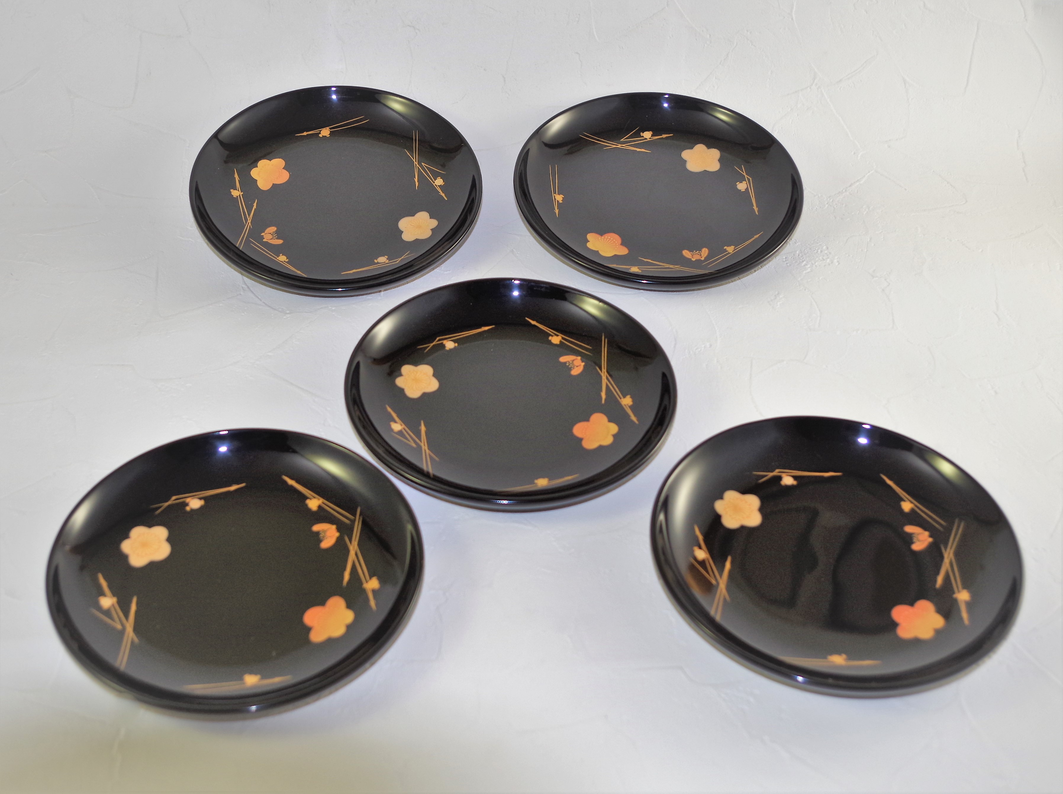 輪島塗 銘々皿梅松葉蒔絵
