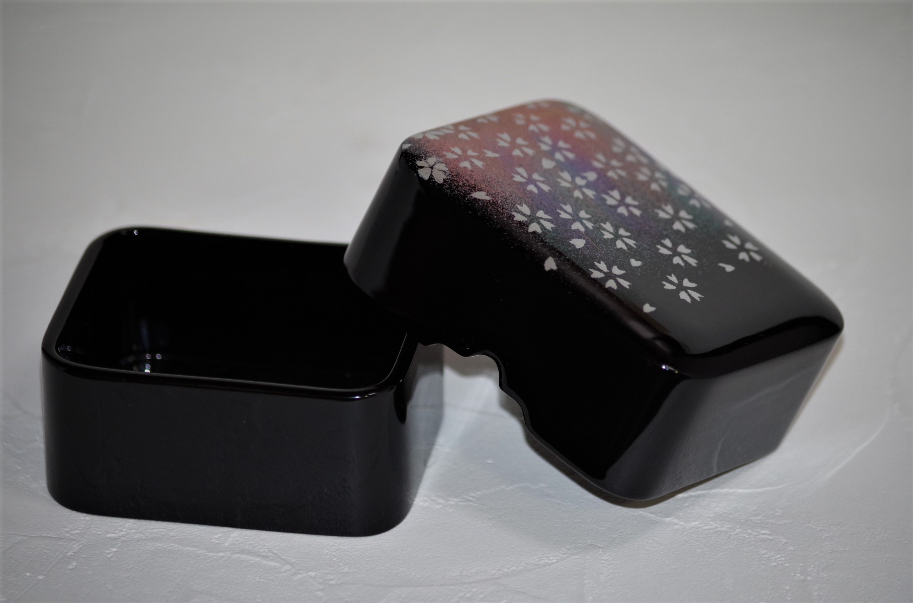輪島塗の奥深い黒の塗に艶やかに桜が咲きます。